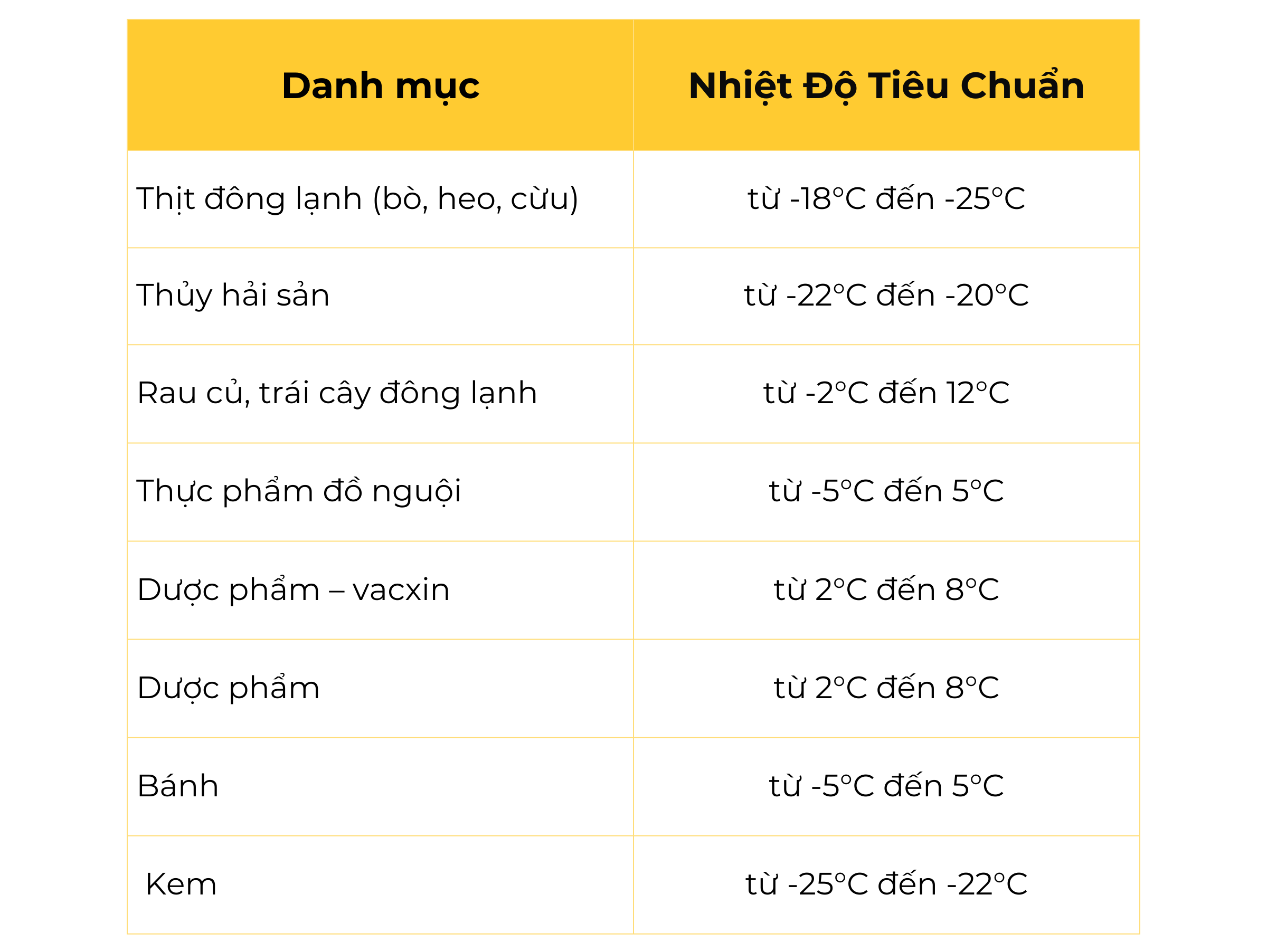 Không phải tất cả hàng đông lạnh đều được bảo quản ở cùng một mức nhiệt. Tùy từng loại sản phẩm, nhiệt độ tiêu chuẩn sẽ khác nhau.